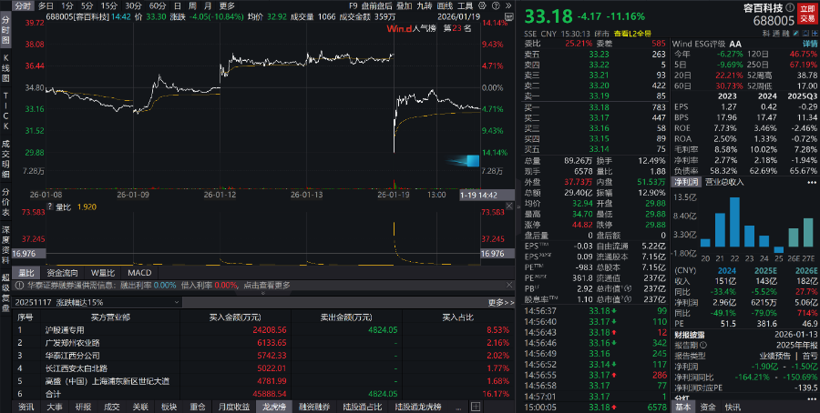 1月19日,容百科技复盘,收跌11.16%,最新市值237亿元,相比停牌前蒸发30亿元。